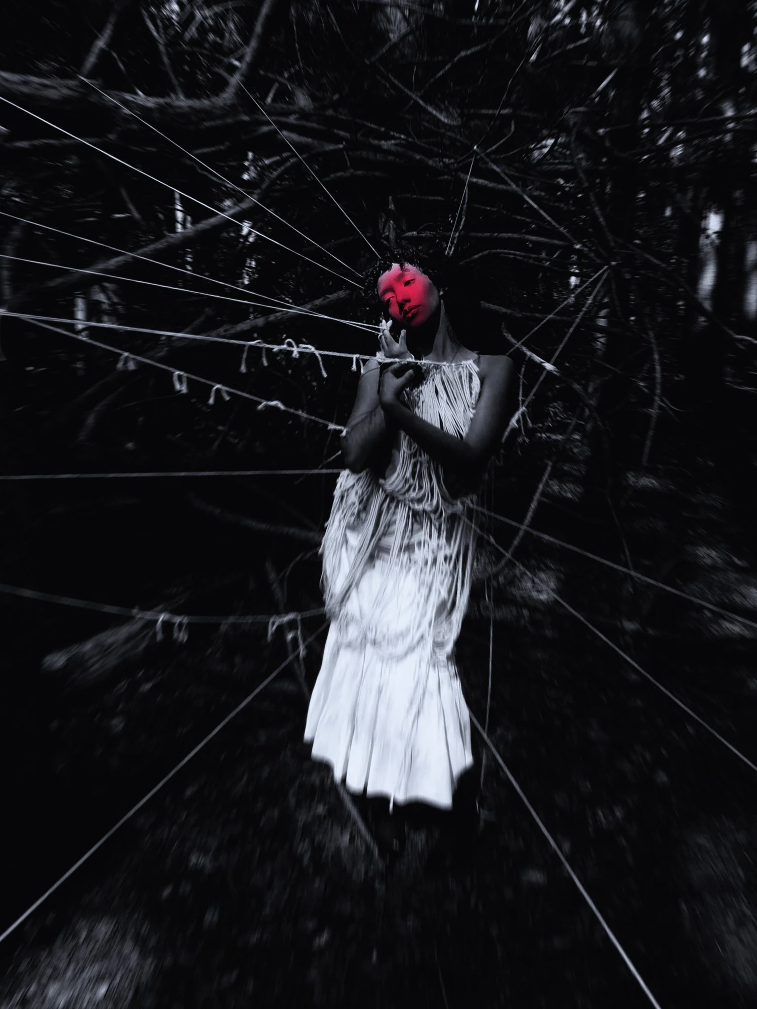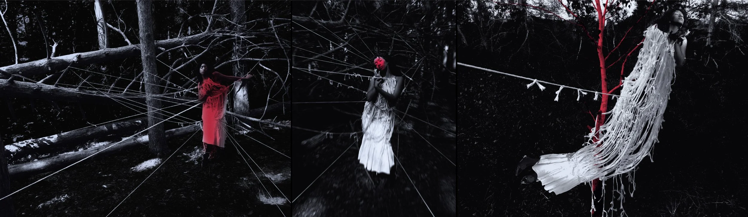 Spatial Dress 01 draws the body from within itself into the embrace of the bod(ies) that surround it. It captures moments of inner transformation, meditation, and yearning within the magical geography of a bog. In this cave turned inside out, at once dead and alive, Spatial Dress 01 becomes a protective refuge mid-metamorphosis.